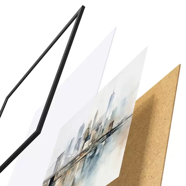 Plakatą sudaro rėmas, pleksiklas, atspausdintas vaizdas ir medžio drožlių plokštės pagrindas. Plakatą galima iš karto pakabinti ant sienos dėl kitoje pusėje esančių laikiklių.