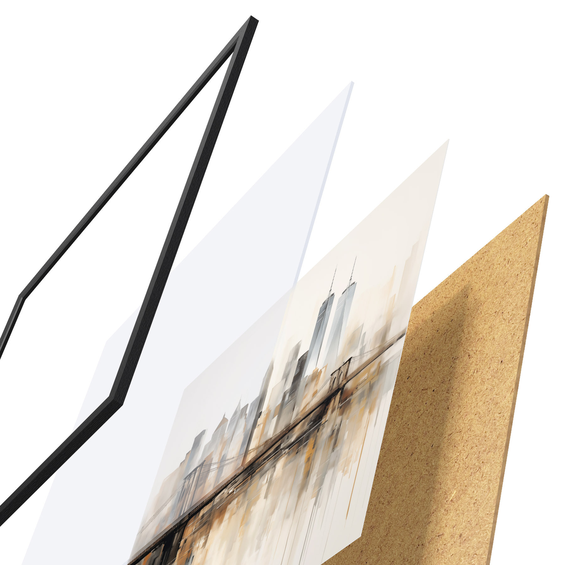 Plakatą sudaro rėmas, pleksiklas, atspausdintas vaizdas ir medžio drožlių plokštės pagrindas. Plakatą galima iš karto pakabinti ant sienos dėl kitoje pusėje esančių laikiklių.