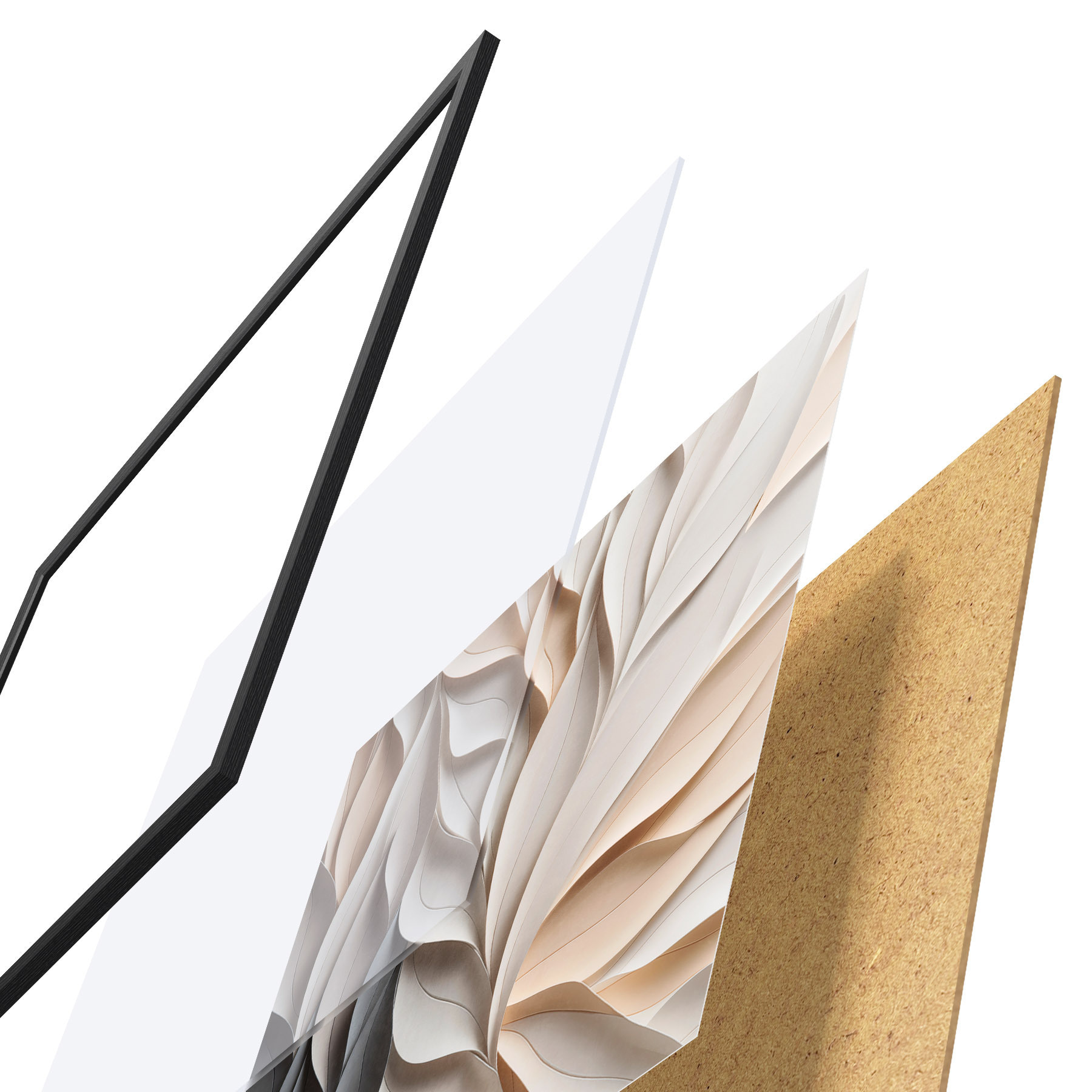 Plakatą sudaro rėmas, pleksiklas, atspausdintas vaizdas ir medžio drožlių plokštės pagrindas. Plakatą galima iš karto pakabinti ant sienos dėl kitoje pusėje esančių laikiklių.