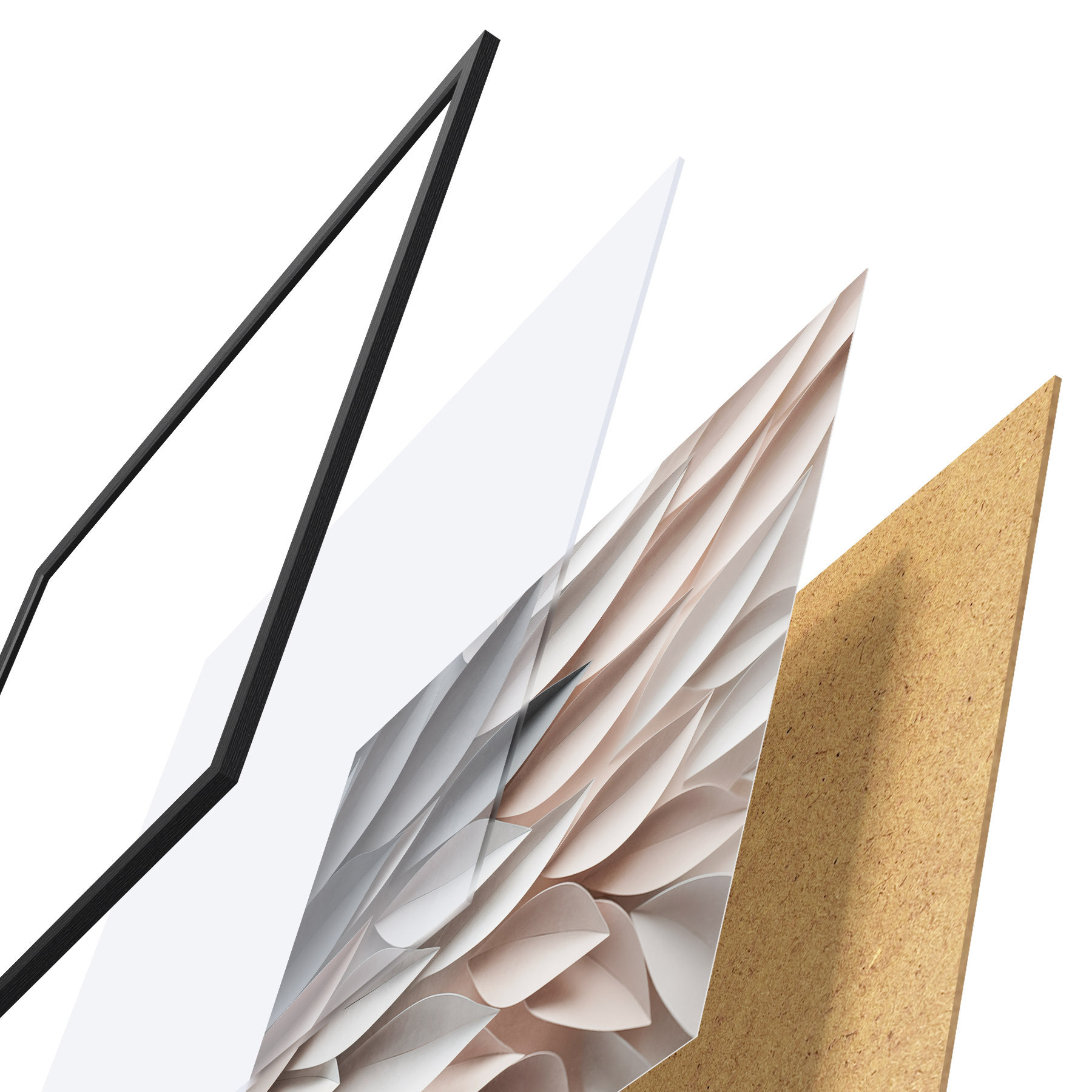 Plakatą sudaro rėmas, pleksiklas, atspausdintas vaizdas ir medžio drožlių plokštės pagrindas. Plakatą galima iš karto pakabinti ant sienos dėl kitoje pusėje esančių laikiklių.