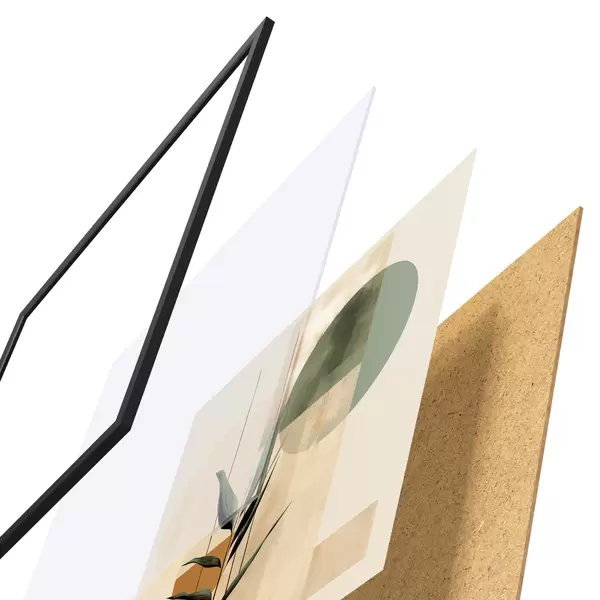 Plakatą sudaro rėmas, pleksiklas, atspausdintas vaizdas ir medžio drožlių plokštės pagrindas. Plakatą galima iš karto pakabinti ant sienos dėl kitoje pusėje esančių laikiklių.