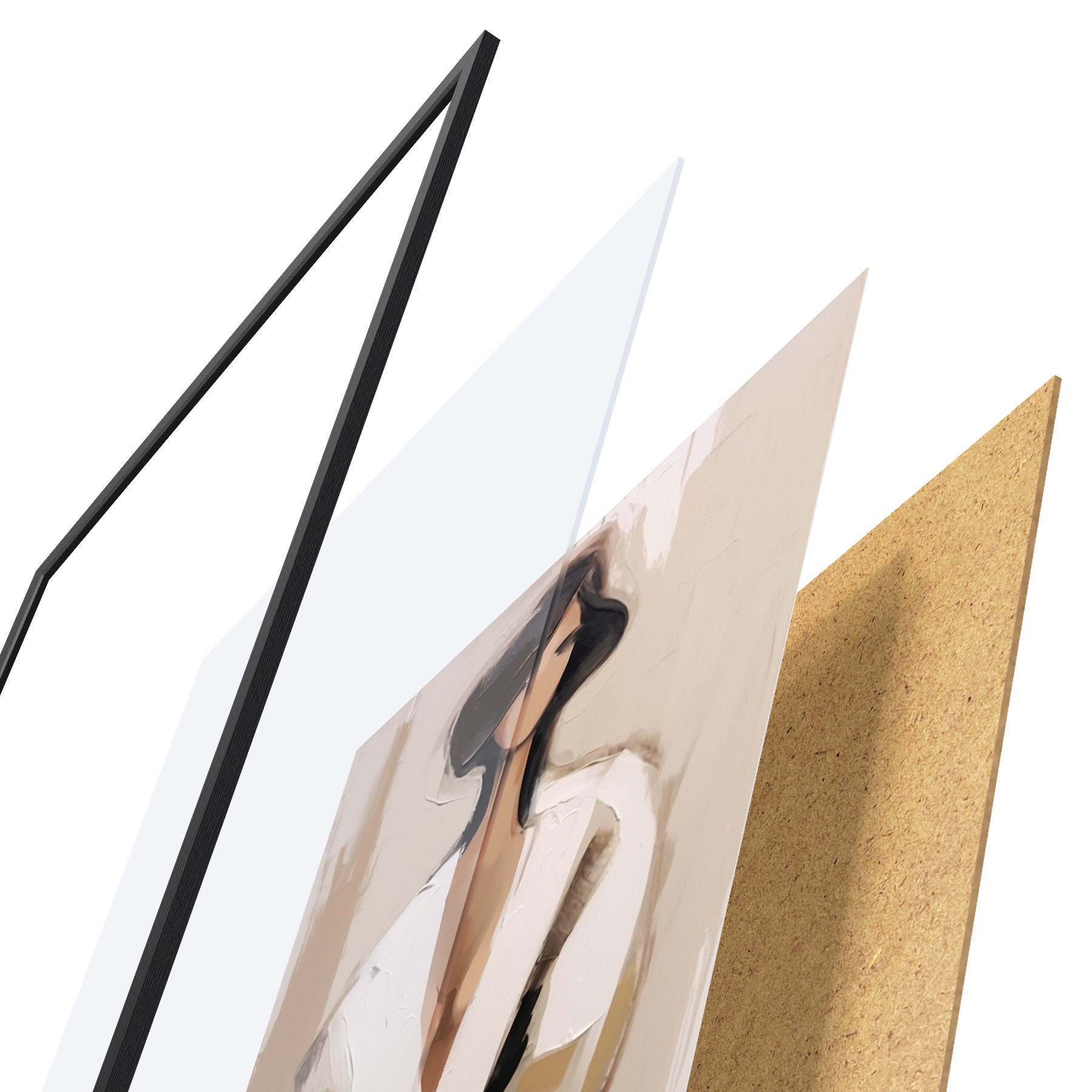 Plakatą sudaro rėmas, pleksiklas, atspausdintas vaizdas ir medžio drožlių plokštės pagrindas. Plakatą galima iš karto pakabinti ant sienos dėl kitoje pusėje esančių laikiklių.
