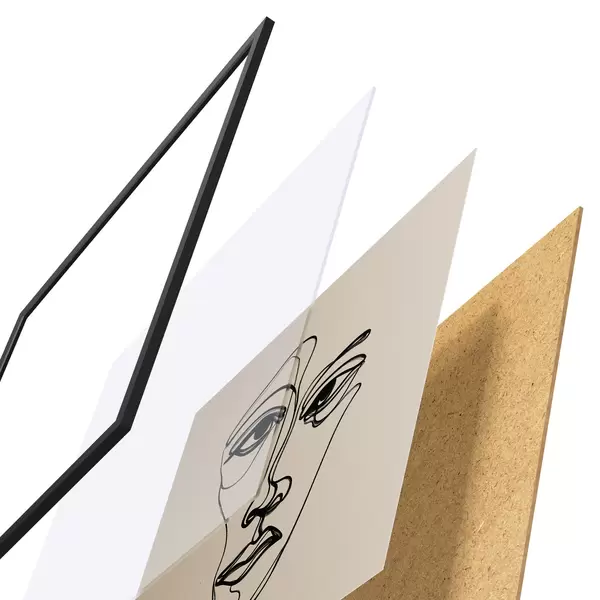Plakatą sudaro rėmas, pleksiklas, atspausdintas vaizdas ir medžio drožlių plokštės pagrindas. Plakatą galima iš karto pakabinti ant sienos dėl kitoje pusėje esančių laikiklių.