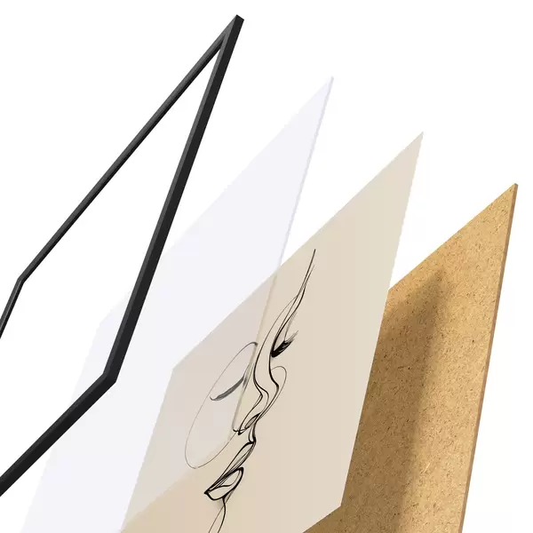 Plakatą sudaro rėmas, pleksiklas, atspausdintas vaizdas ir medžio drožlių plokštės pagrindas. Plakatą galima iš karto pakabinti ant sienos dėl kitoje pusėje esančių laikiklių.