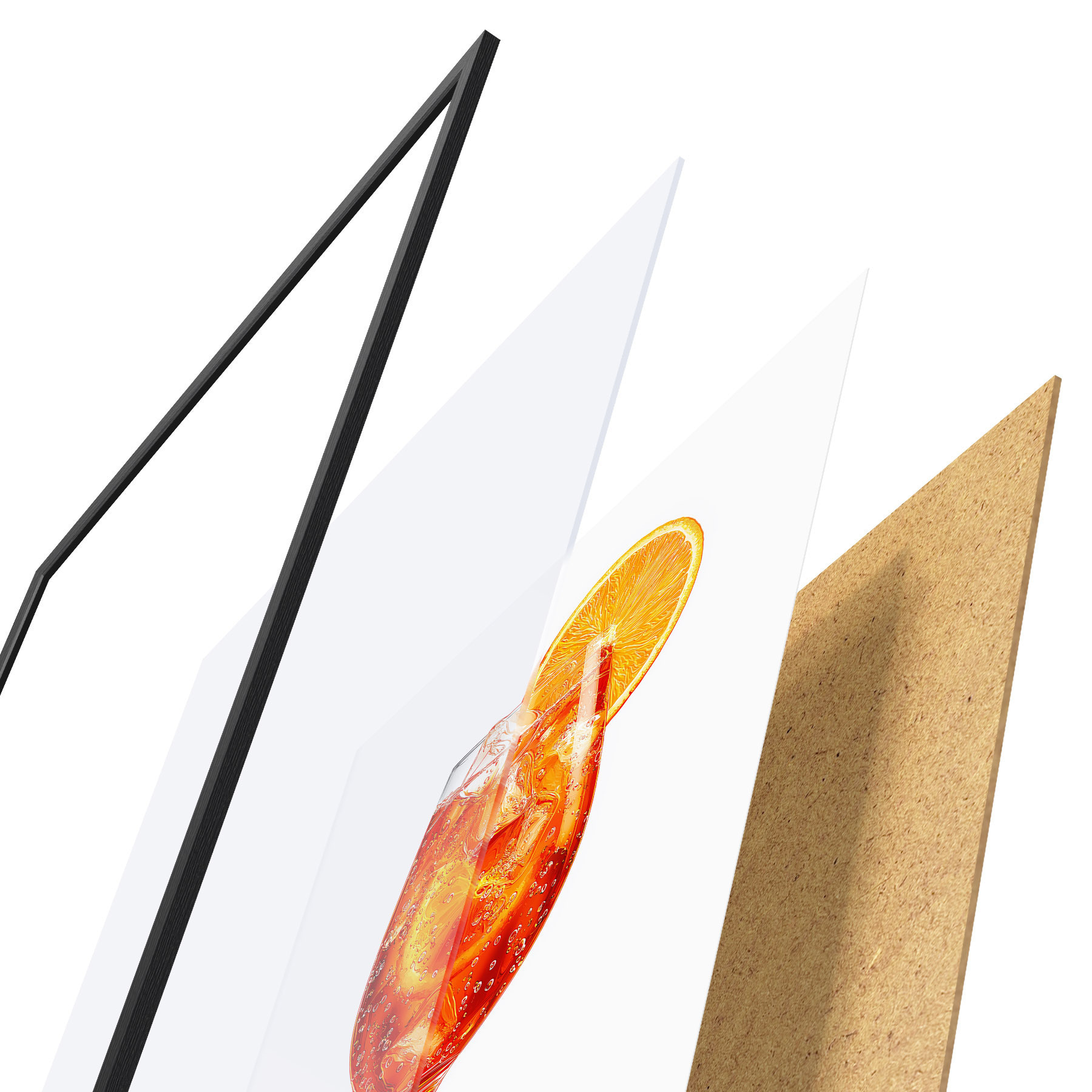 Plakatą sudaro rėmas, pleksiklas, atspausdintas vaizdas ir medžio drožlių plokštės pagrindas. Plakatą galima iš karto pakabinti ant sienos dėl kitoje pusėje esančių laikiklių.