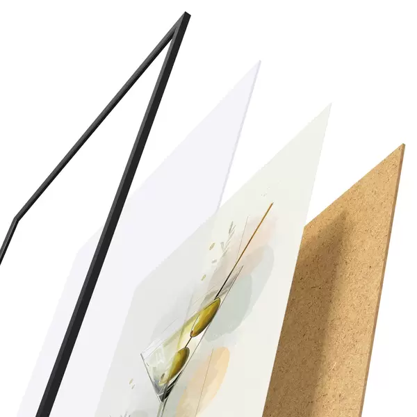 Plakatą sudaro rėmas, pleksiklas, atspausdintas vaizdas ir medžio drožlių plokštės pagrindas. Plakatą galima iš karto pakabinti ant sienos dėl kitoje pusėje esančių laikiklių.