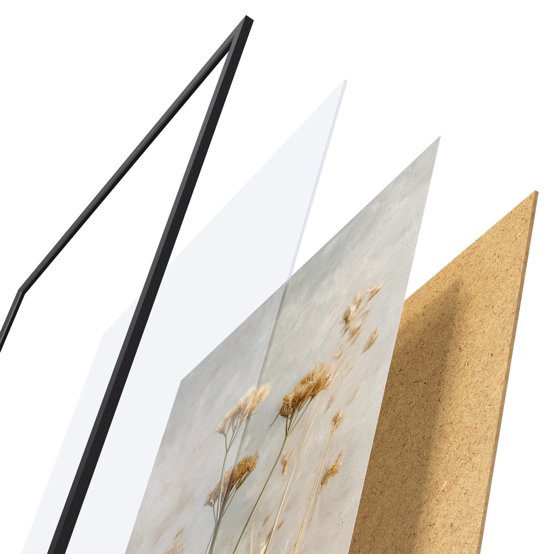 Plakatą sudaro rėmas, pleksiklas, atspausdintas vaizdas ir medžio drožlių plokštės pagrindas. Plakatą galima iš karto pakabinti ant sienos dėl kitoje pusėje esančių laikiklių.