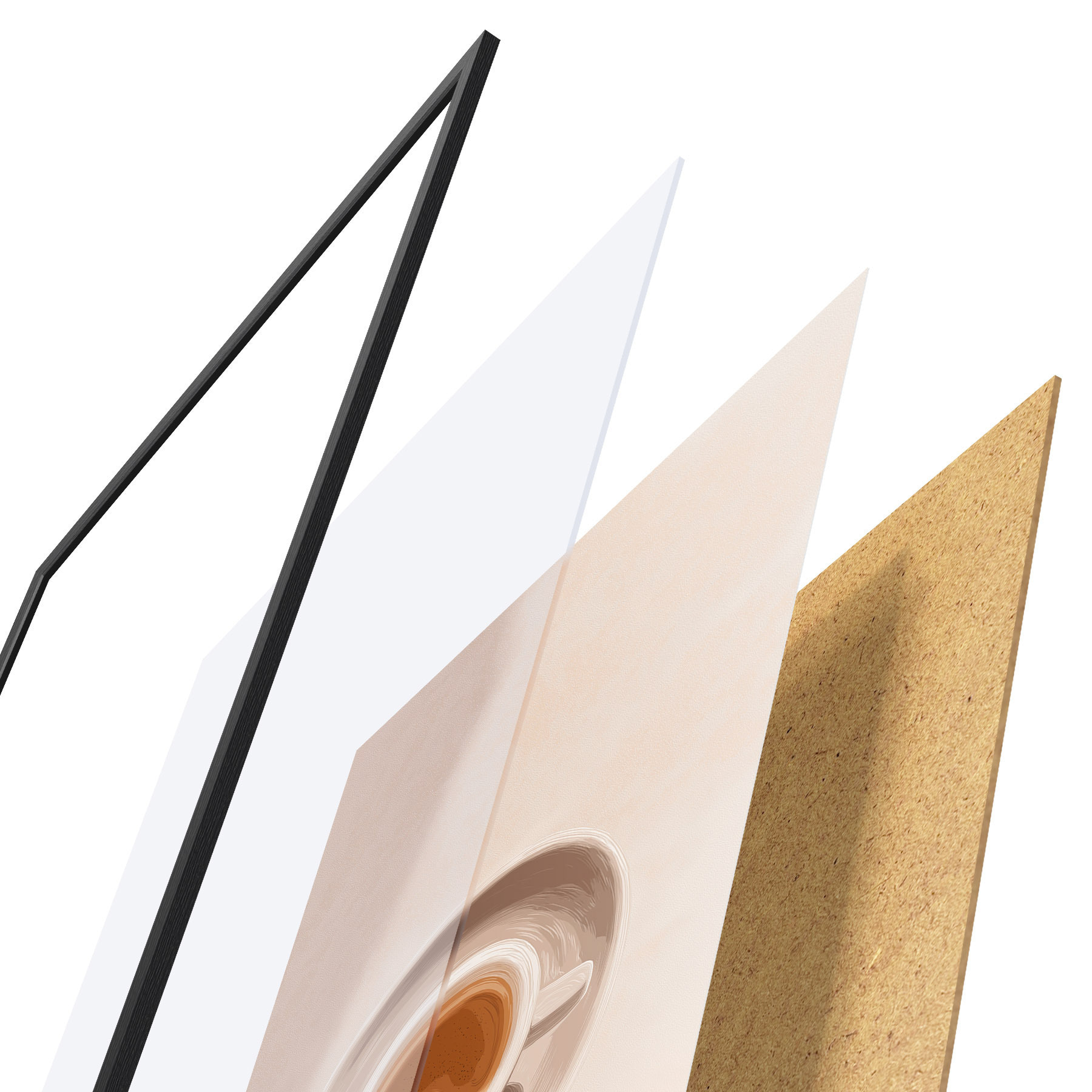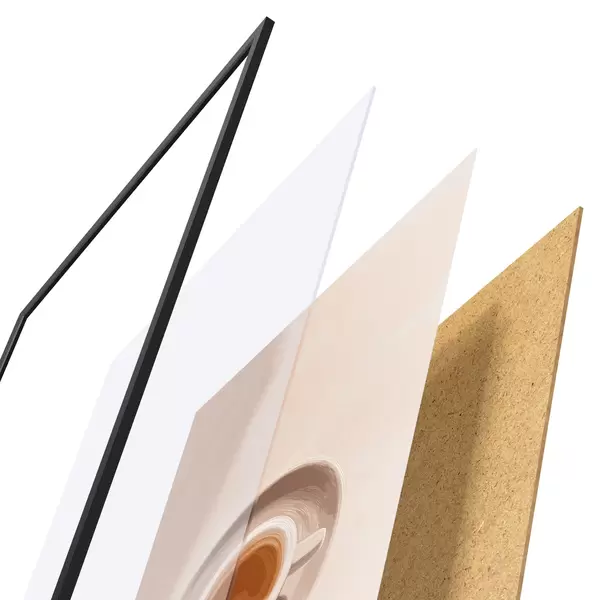 Plakatą sudaro rėmas, pleksiklas, atspausdintas vaizdas ir medžio drožlių plokštės pagrindas. Plakatą galima iš karto pakabinti ant sienos dėl kitoje pusėje esančių laikiklių.