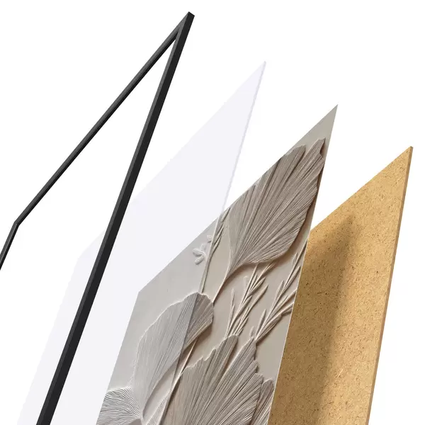 Plakatą sudaro rėmas, pleksiklas, atspausdintas vaizdas ir medžio drožlių plokštės pagrindas. Plakatą galima iš karto pakabinti ant sienos dėl kitoje pusėje esančių laikiklių.