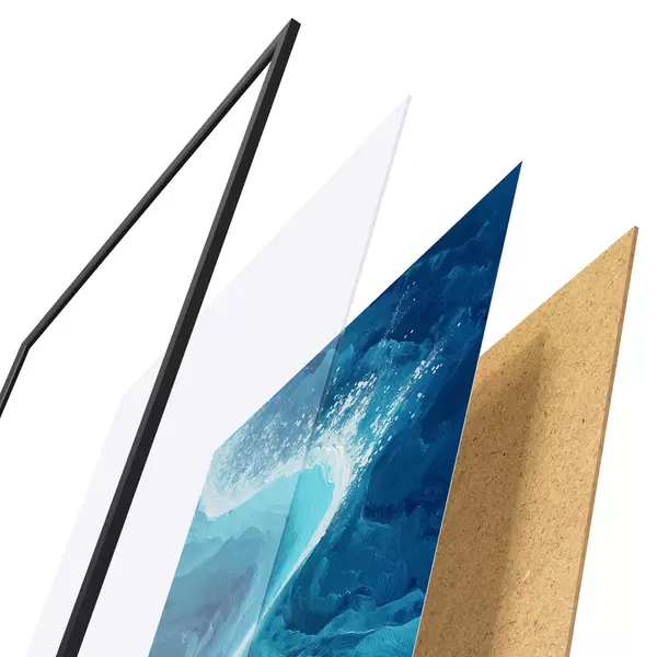 Plakatą sudaro rėmas, pleksiklas, atspausdintas vaizdas ir medžio drožlių plokštės pagrindas. Plakatą galima iš karto pakabinti ant sienos dėl kitoje pusėje esančių laikiklių.