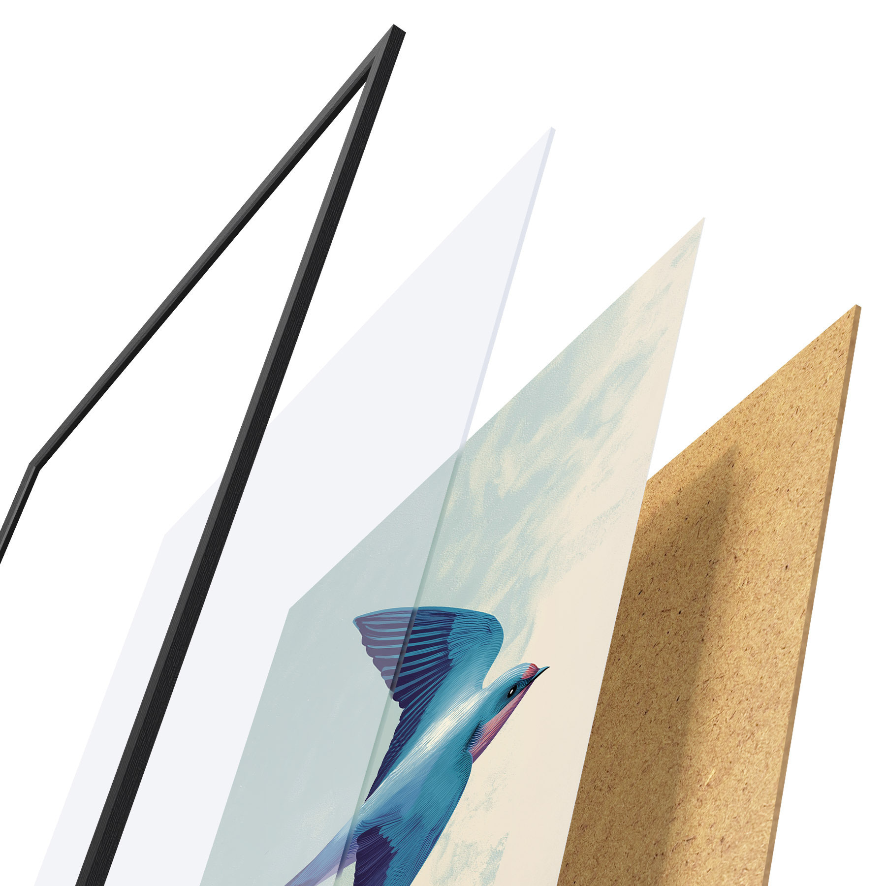 Plakatą sudaro rėmas, pleksiklas, atspausdintas vaizdas ir medžio drožlių plokštės pagrindas. Plakatą galima iš karto pakabinti ant sienos dėl kitoje pusėje esančių laikiklių.