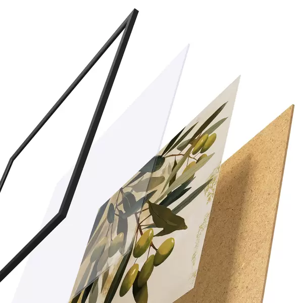 Plakatą sudaro rėmas, pleksiklas, atspausdintas vaizdas ir medžio drožlių plokštės pagrindas. Plakatą galima iš karto pakabinti ant sienos dėl kitoje pusėje esančių laikiklių.