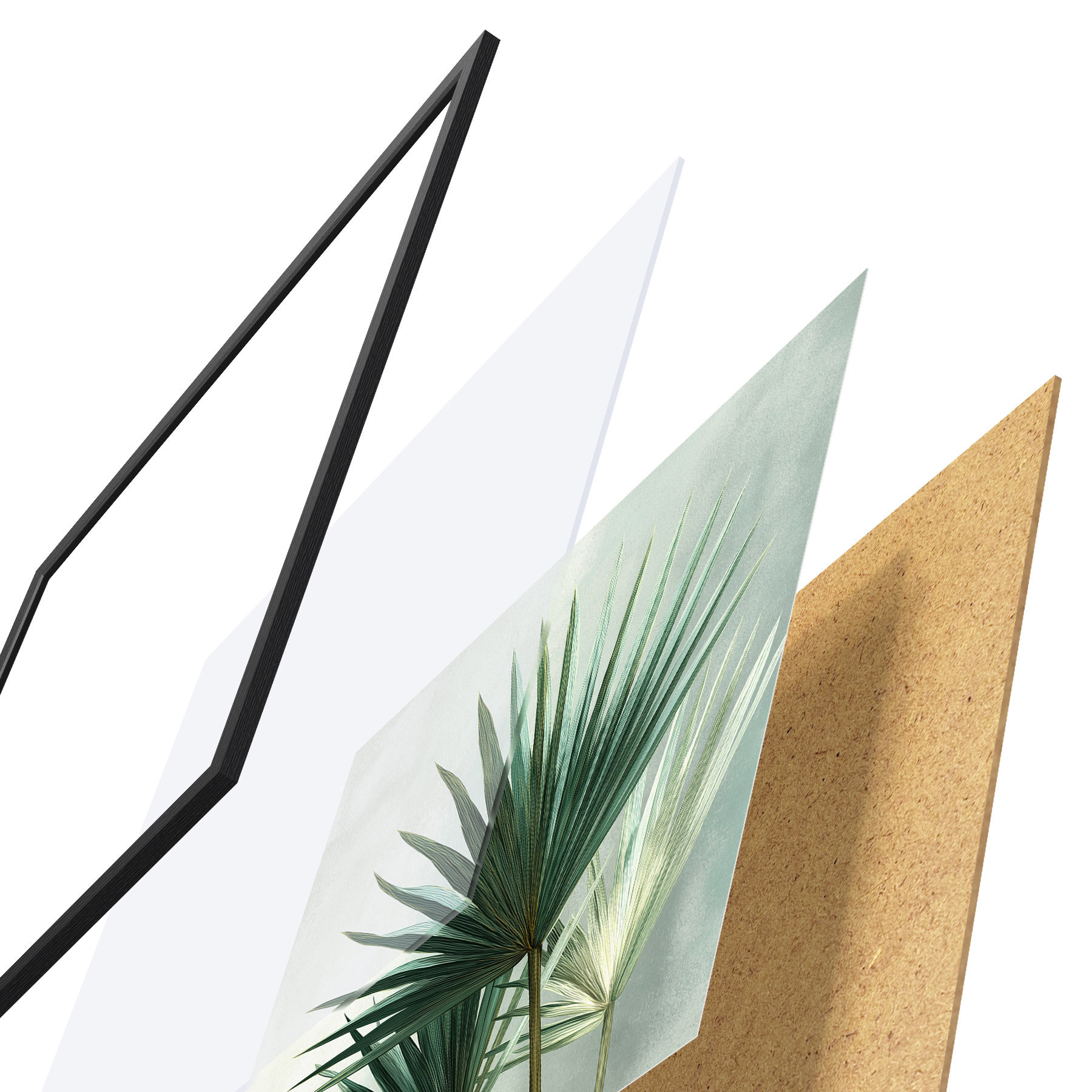 Plakatą sudaro rėmas, pleksiklas, atspausdintas vaizdas ir medžio drožlių plokštės pagrindas. Plakatą galima iš karto pakabinti ant sienos dėl kitoje pusėje esančių laikiklių.