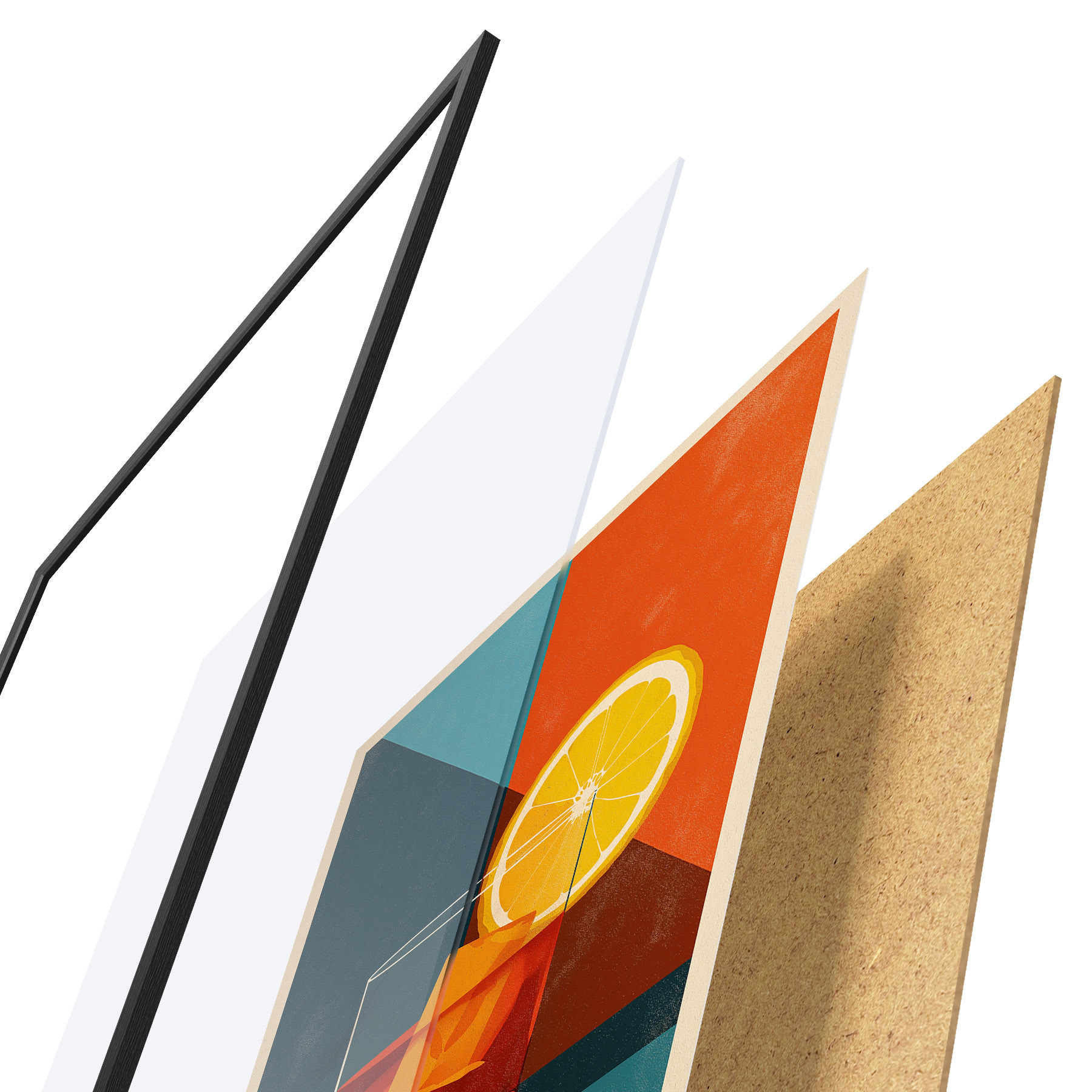 Plakatą sudaro rėmas, pleksiklas, atspausdintas vaizdas ir medžio drožlių plokštės pagrindas. Plakatą galima iš karto pakabinti ant sienos dėl kitoje pusėje esančių laikiklių.