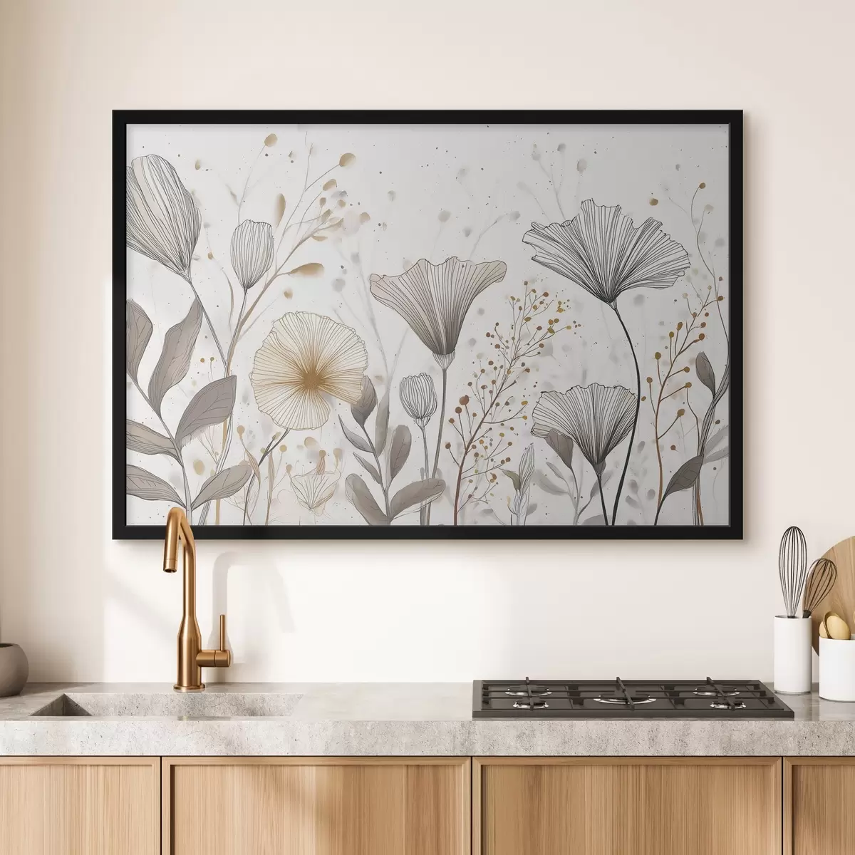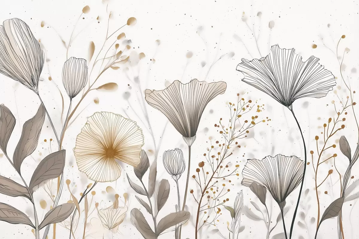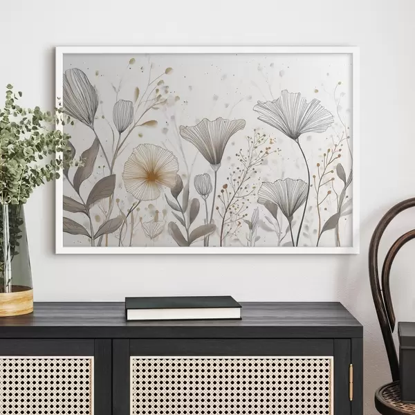 Plakatas Grafiškos gėlės ir žolės, minimalizmas f48484