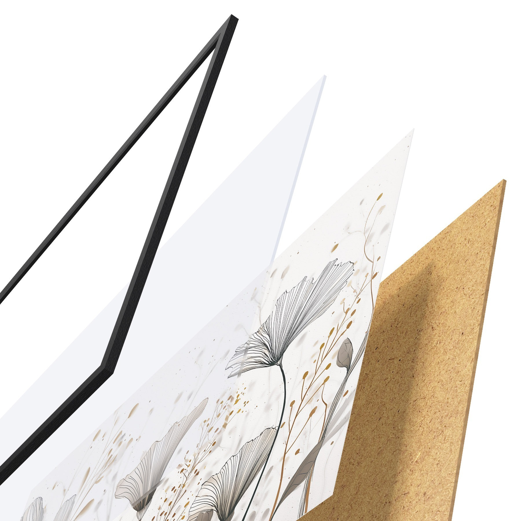 Plakatą sudaro rėmas, pleksiklas, atspausdintas vaizdas ir medžio drožlių plokštės pagrindas. Plakatą galima iš karto pakabinti ant sienos dėl kitoje pusėje esančių laikiklių.
