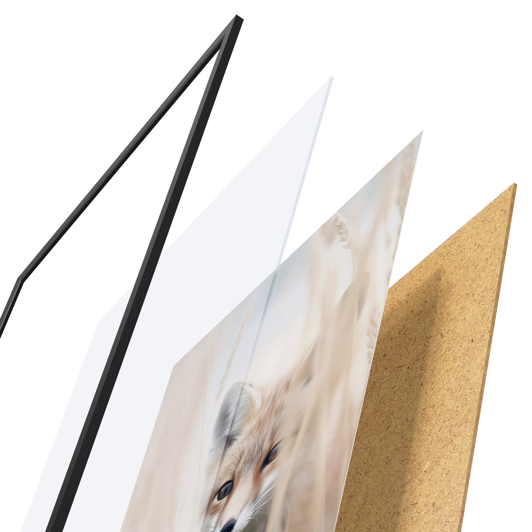 Plakatą sudaro rėmas, pleksiklas, atspausdintas vaizdas ir medžio drožlių plokštės pagrindas. Plakatą galima iš karto pakabinti ant sienos dėl kitoje pusėje esančių laikiklių.