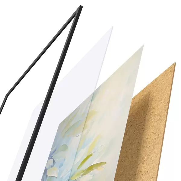 Plakatą sudaro rėmas, pleksiklas, atspausdintas vaizdas ir medžio drožlių plokštės pagrindas. Plakatą galima iš karto pakabinti ant sienos dėl kitoje pusėje esančių laikiklių.