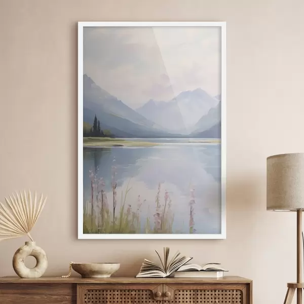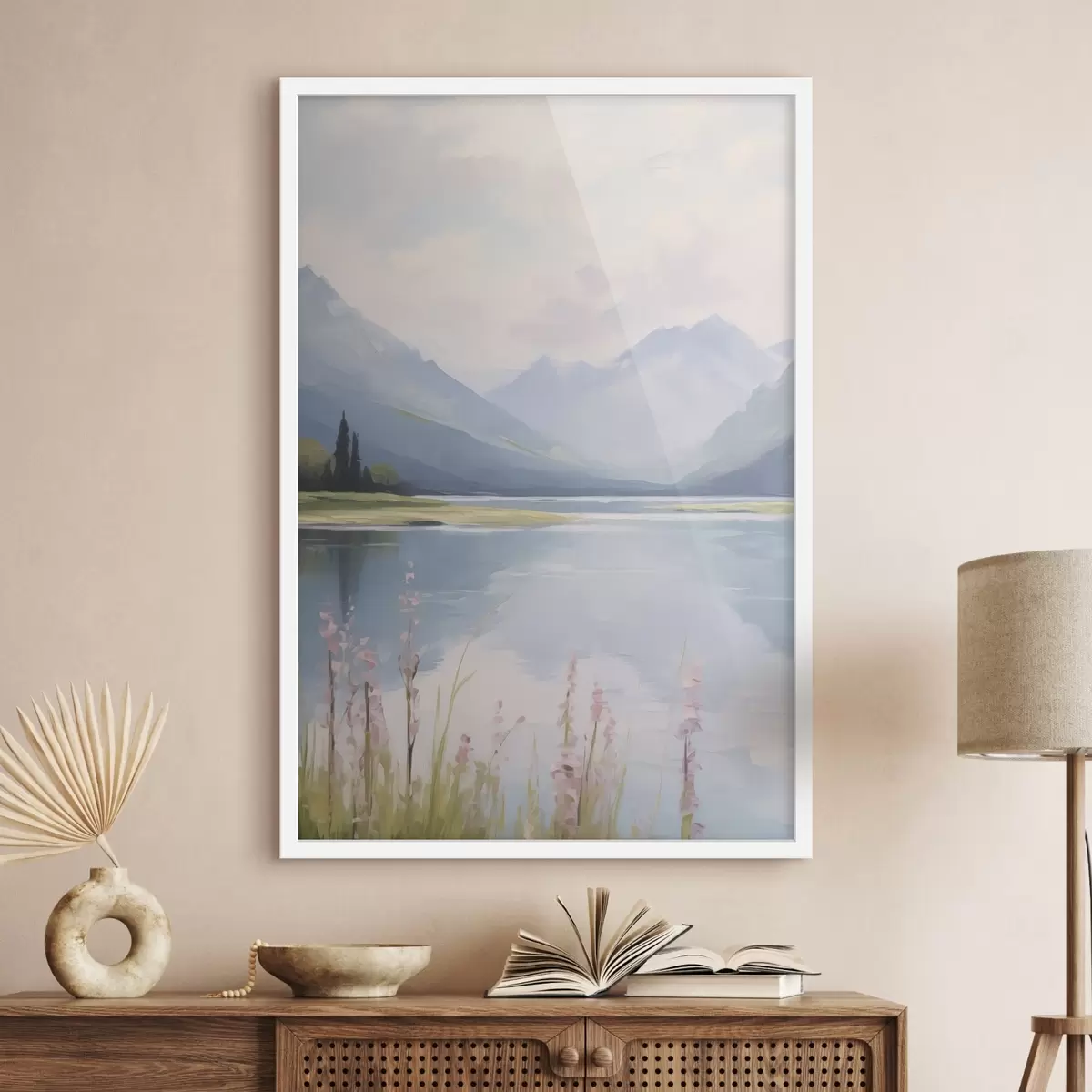 Plakatas Ežeras netoli kalnų tapybos imitacija Ne f48503