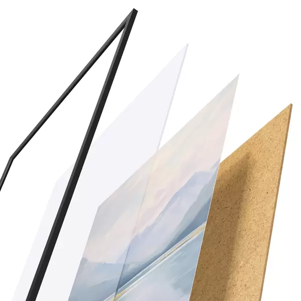 Plakatą sudaro rėmas, pleksiklas, atspausdintas vaizdas ir medžio drožlių plokštės pagrindas. Plakatą galima iš karto pakabinti ant sienos dėl kitoje pusėje esančių laikiklių.