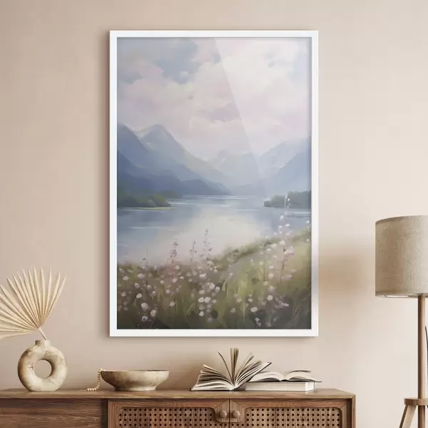 Plakatas Paveikslas, vaizduojantis kalnų ežerą f48504