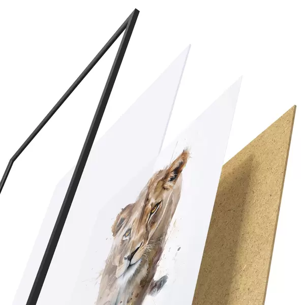 Plakatą sudaro rėmas, pleksiklas, atspausdintas vaizdas ir medžio drožlių plokštės pagrindas. Plakatą galima iš karto pakabinti ant sienos dėl kitoje pusėje esančių laikiklių.