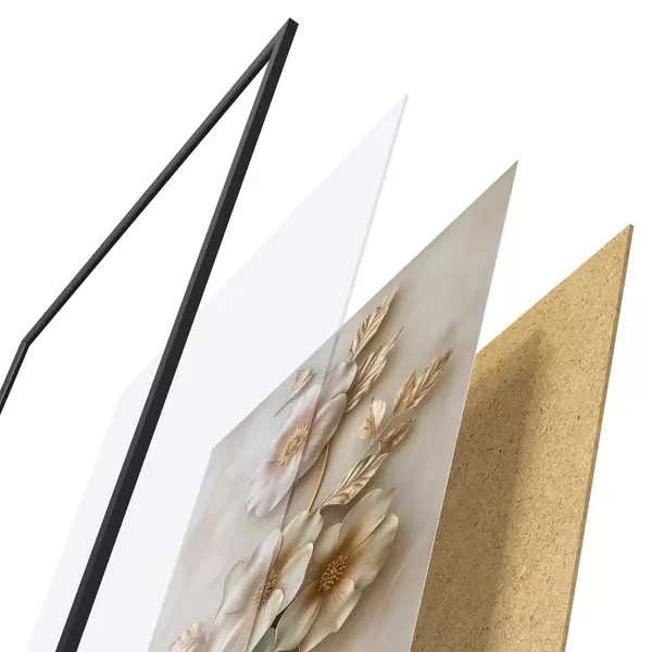 Plakatą sudaro rėmas, pleksiklas, atspausdintas vaizdas ir medžio drožlių plokštės pagrindas. Plakatą galima iš karto pakabinti ant sienos dėl kitoje pusėje esančių laikiklių.