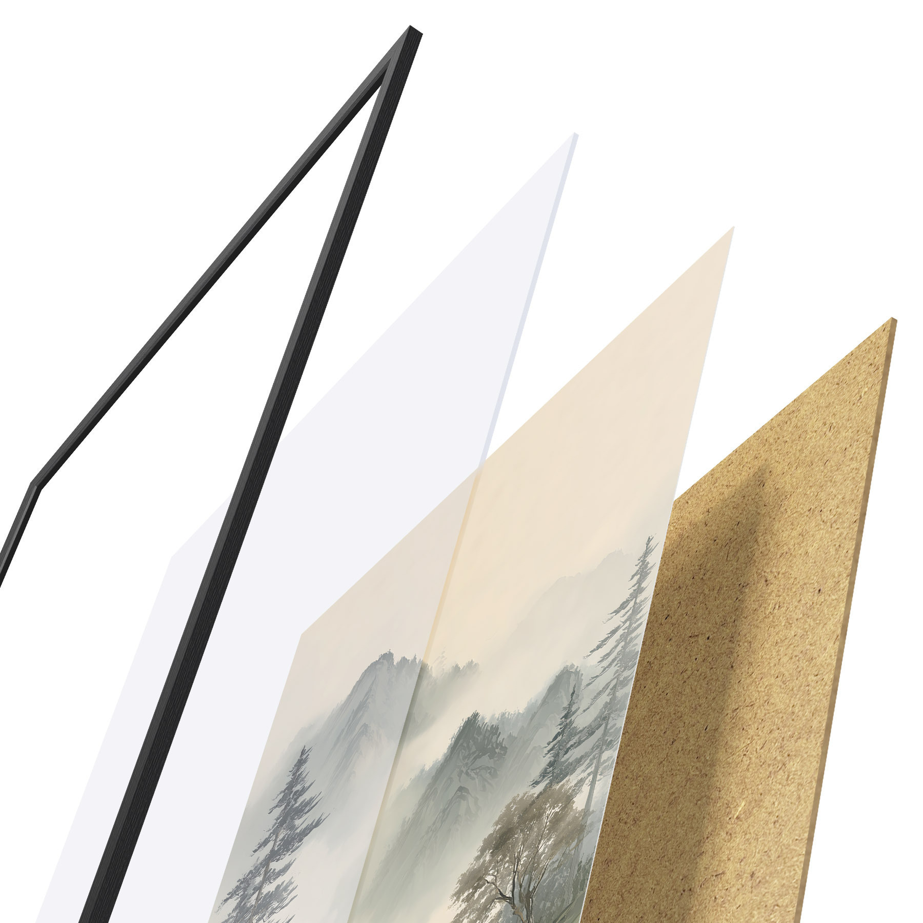 Plakatą sudaro rėmas, pleksiklas, atspausdintas vaizdas ir medžio drožlių plokštės pagrindas. Plakatą galima iš karto pakabinti ant sienos dėl kitoje pusėje esančių laikiklių.