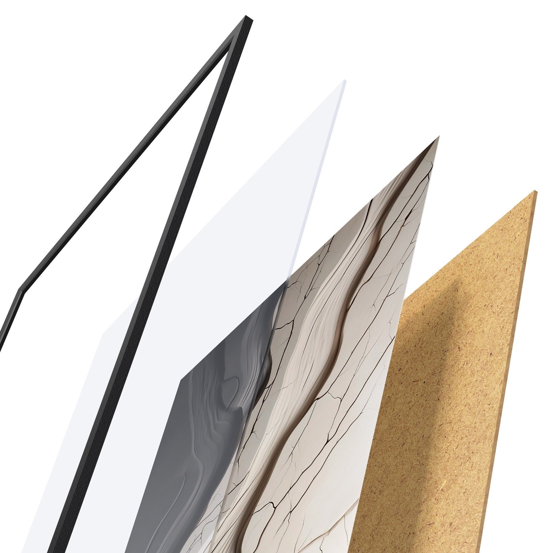 Plakatą sudaro rėmas, pleksiklas, atspausdintas vaizdas ir medžio drožlių plokštės pagrindas. Plakatą galima iš karto pakabinti ant sienos dėl kitoje pusėje esančių laikiklių.