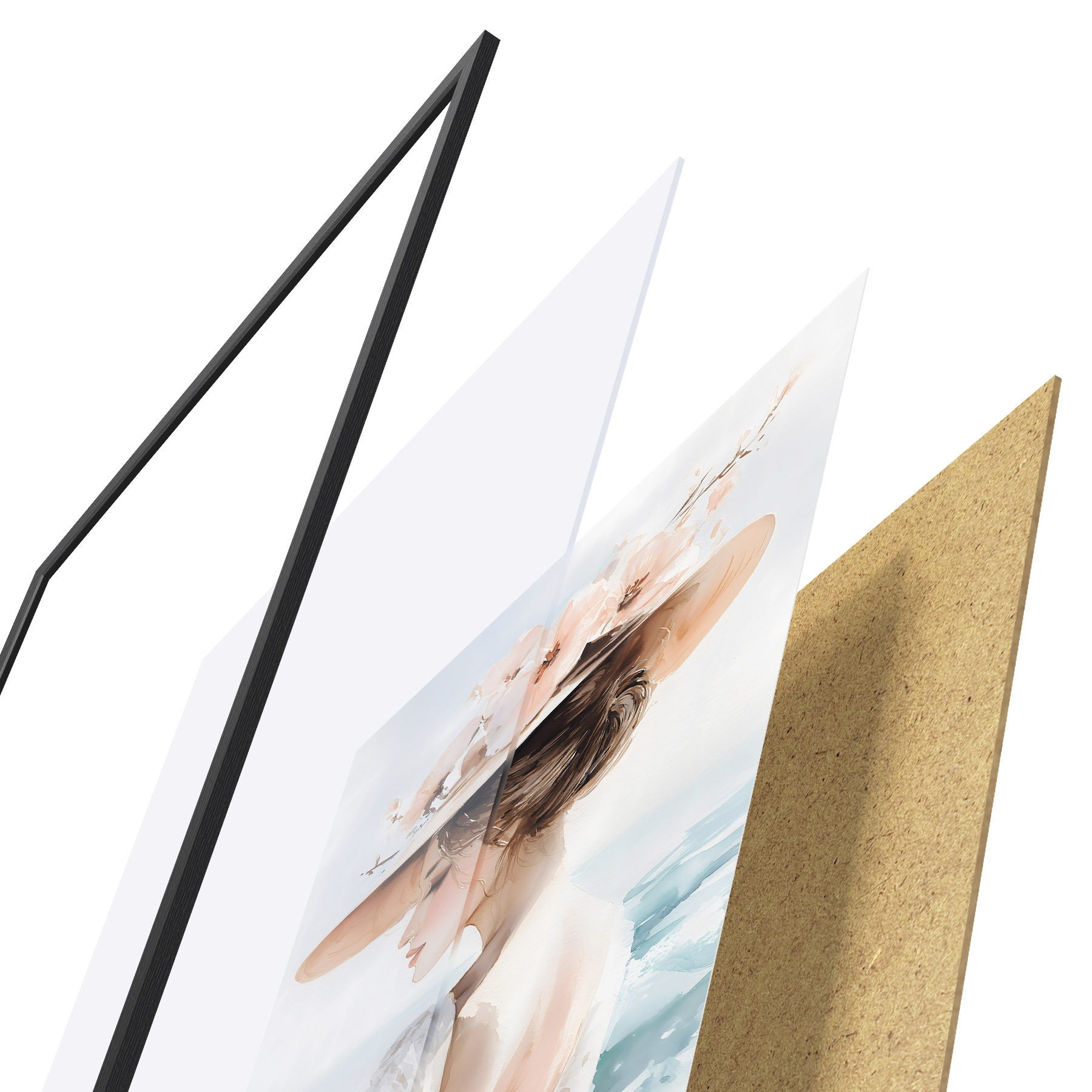 Plakatą sudaro rėmas, pleksiklas, atspausdintas vaizdas ir medžio drožlių plokštės pagrindas. Plakatą galima iš karto pakabinti ant sienos dėl kitoje pusėje esančių laikiklių.
