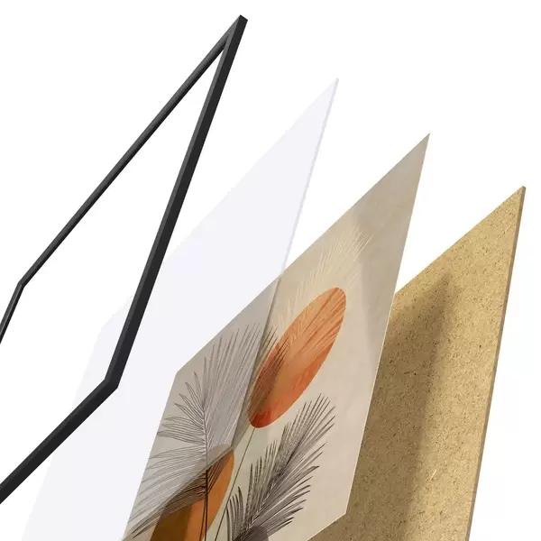 Plakatą sudaro rėmas, pleksiklas, atspausdintas vaizdas ir medžio drožlių plokštės pagrindas. Plakatą galima iš karto pakabinti ant sienos dėl kitoje pusėje esančių laikiklių.