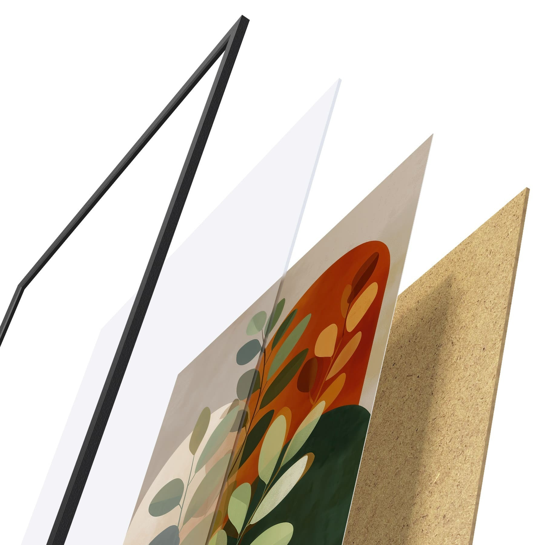Plakatą sudaro rėmas, pleksiklas, atspausdintas vaizdas ir medžio drožlių plokštės pagrindas. Plakatą galima iš karto pakabinti ant sienos dėl kitoje pusėje esančių laikiklių.