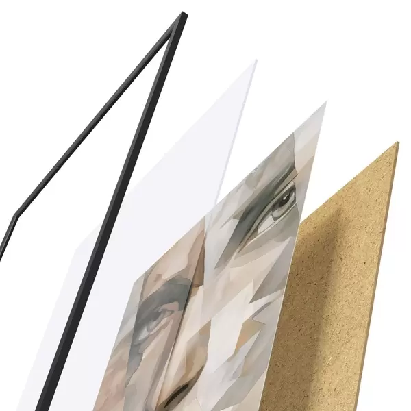 Plakatą sudaro rėmas, pleksiklas, atspausdintas vaizdas ir medžio drožlių plokštės pagrindas. Plakatą galima iš karto pakabinti ant sienos dėl kitoje pusėje esančių laikiklių.