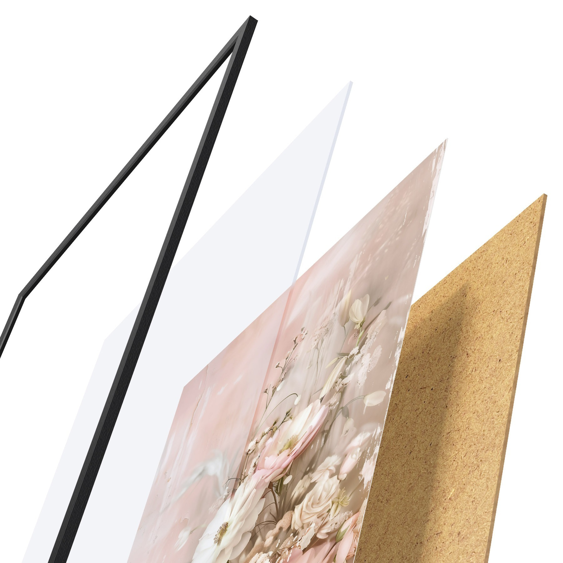 Plakatą sudaro rėmas, pleksiklas, atspausdintas vaizdas ir medžio drožlių plokštės pagrindas. Plakatą galima iš karto pakabinti ant sienos dėl kitoje pusėje esančių laikiklių.