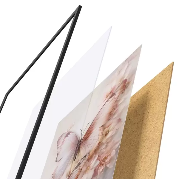 Plakatą sudaro rėmas, pleksiklas, atspausdintas vaizdas ir medžio drožlių plokštės pagrindas. Plakatą galima iš karto pakabinti ant sienos dėl kitoje pusėje esančių laikiklių.