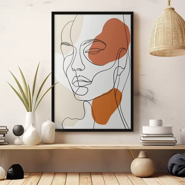 Plakatas Abstrakčios veidų formos, linijinis piešinys f48569