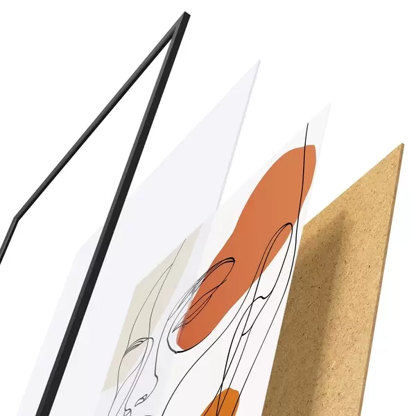 Plakatą sudaro rėmas, pleksiklas, atspausdintas vaizdas ir medžio drožlių plokštės pagrindas. Plakatą galima iš karto pakabinti ant sienos dėl kitoje pusėje esančių laikiklių.