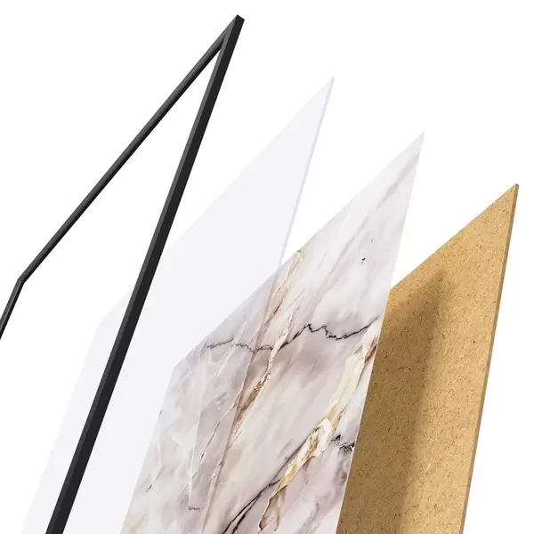 Plakatą sudaro rėmas, pleksiklas, atspausdintas vaizdas ir medžio drožlių plokštės pagrindas. Plakatą galima iš karto pakabinti ant sienos dėl kitoje pusėje esančių laikiklių.