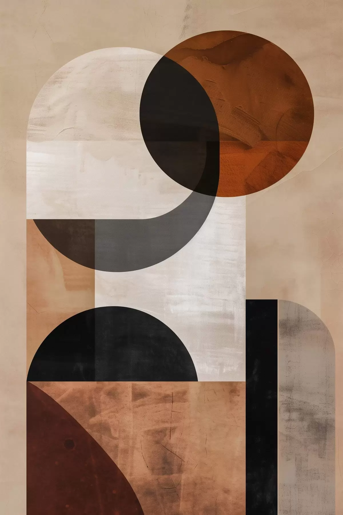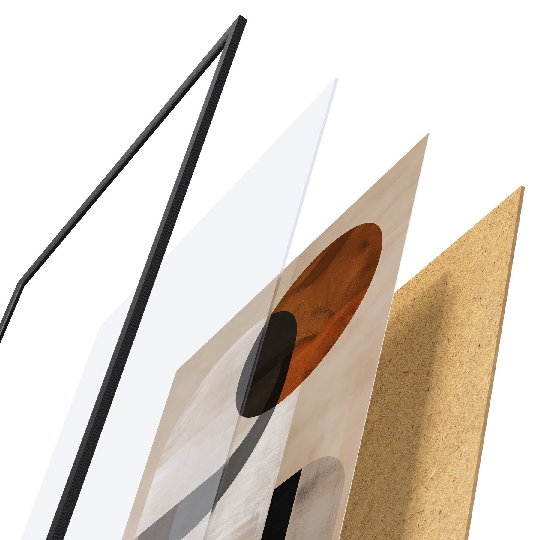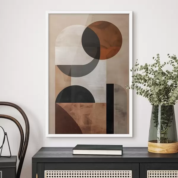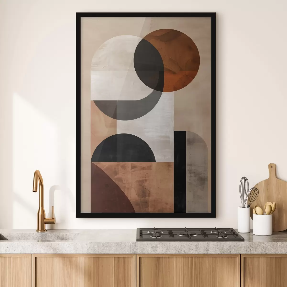Plakatas Geometrinė abstrakcija, smėlio spalvos ir juodos Ne f48583