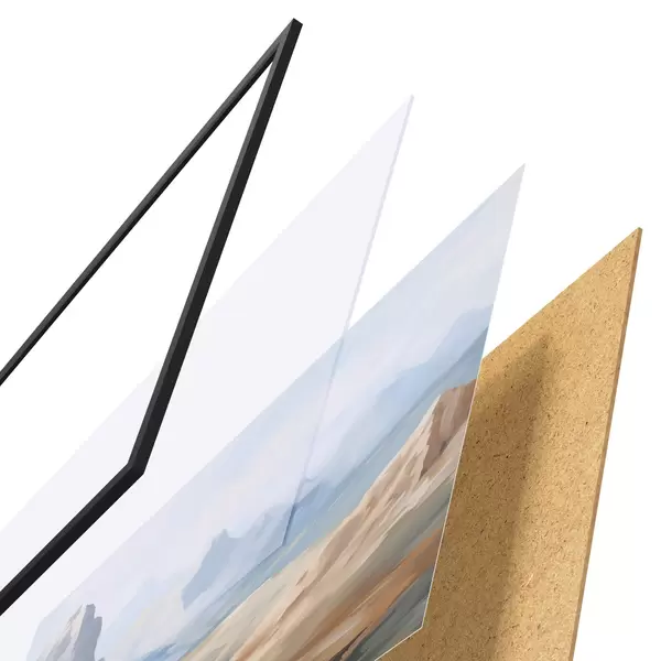 Plakatą sudaro rėmas, pleksiklas, atspausdintas vaizdas ir medžio drožlių plokštės pagrindas. Plakatą galima iš karto pakabinti ant sienos dėl kitoje pusėje esančių laikiklių.