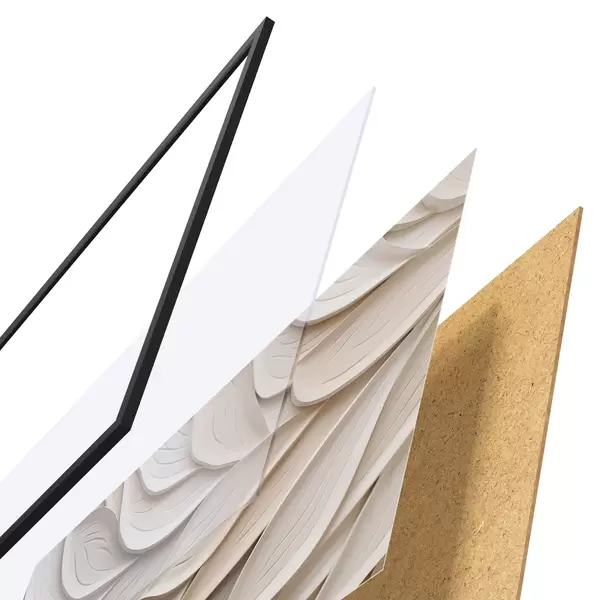 Plakatą sudaro rėmas, pleksiklas, atspausdintas vaizdas ir medžio drožlių plokštės pagrindas. Plakatą galima iš karto pakabinti ant sienos dėl kitoje pusėje esančių laikiklių.
