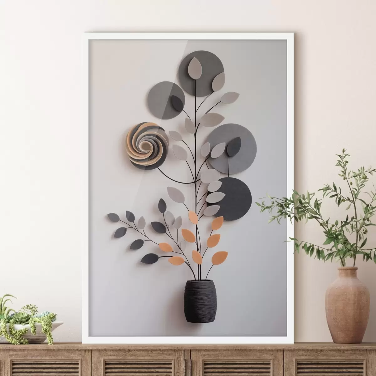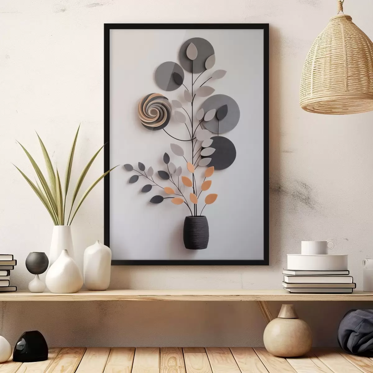Plakatas Dekoratyvinis augalas su apskritimais ir spiralės formos elementais f48599