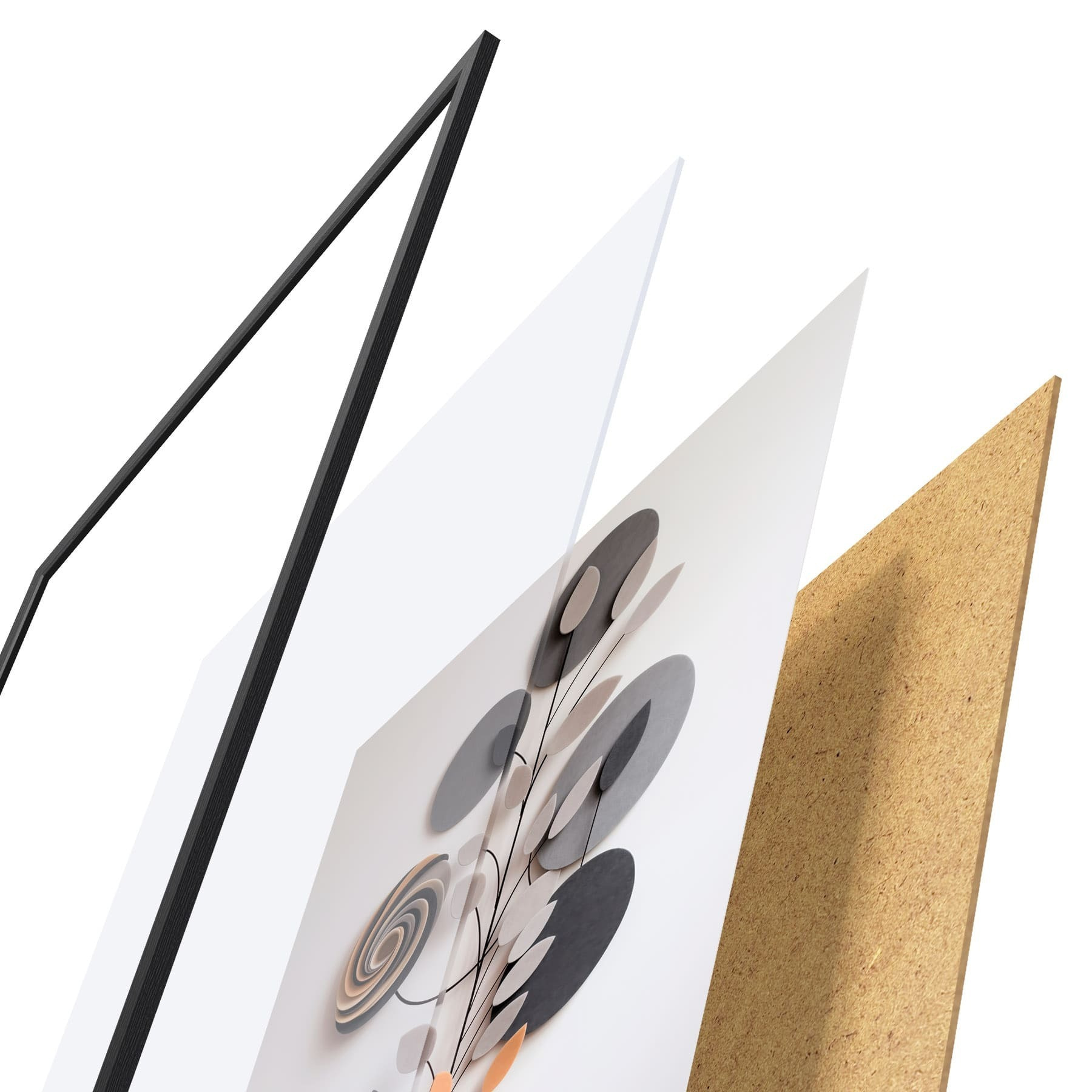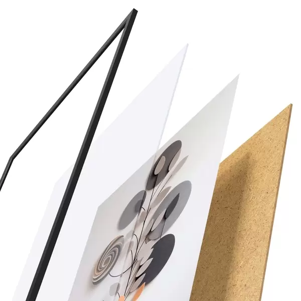 Plakatą sudaro rėmas, pleksiklas, atspausdintas vaizdas ir medžio drožlių plokštės pagrindas. Plakatą galima iš karto pakabinti ant sienos dėl kitoje pusėje esančių laikiklių.