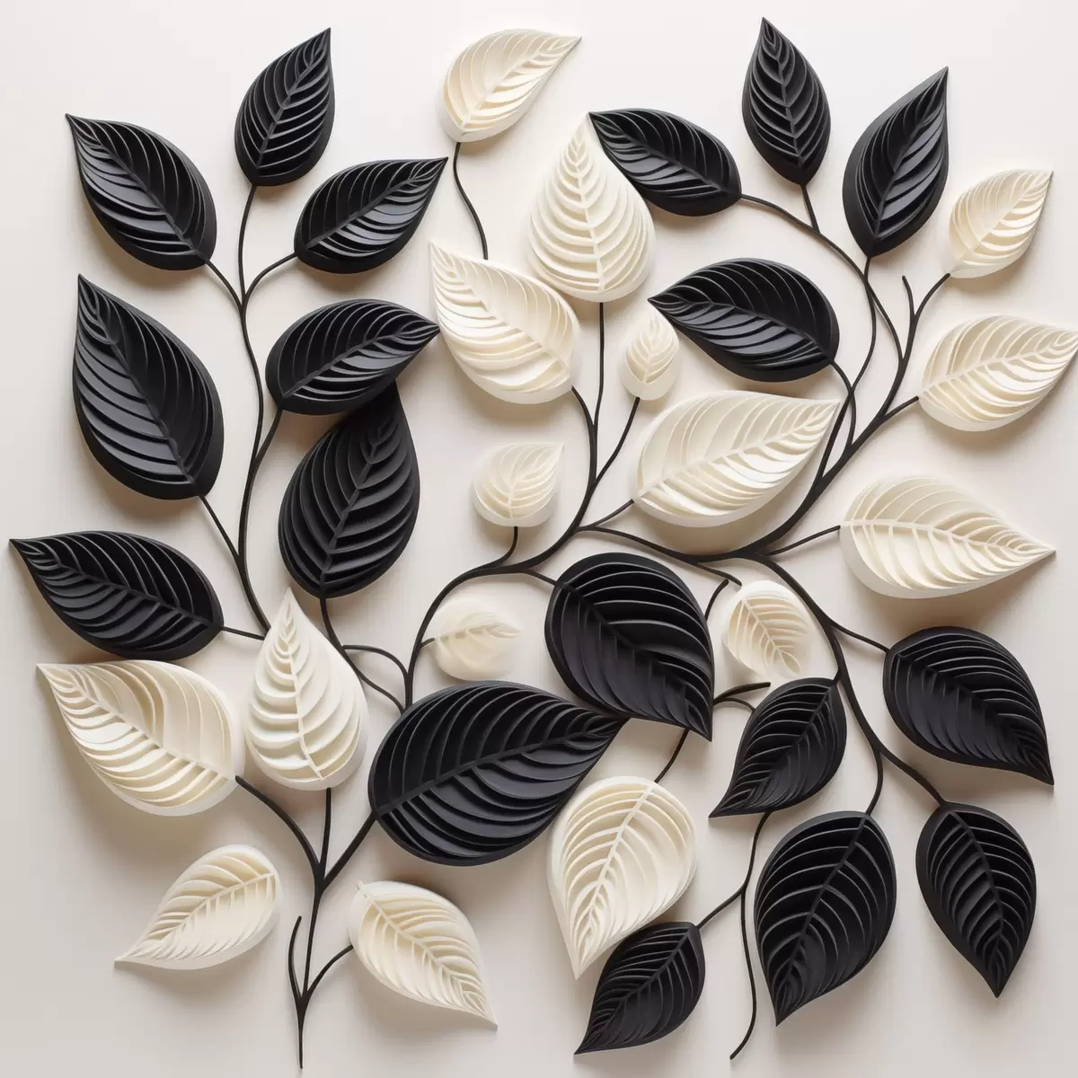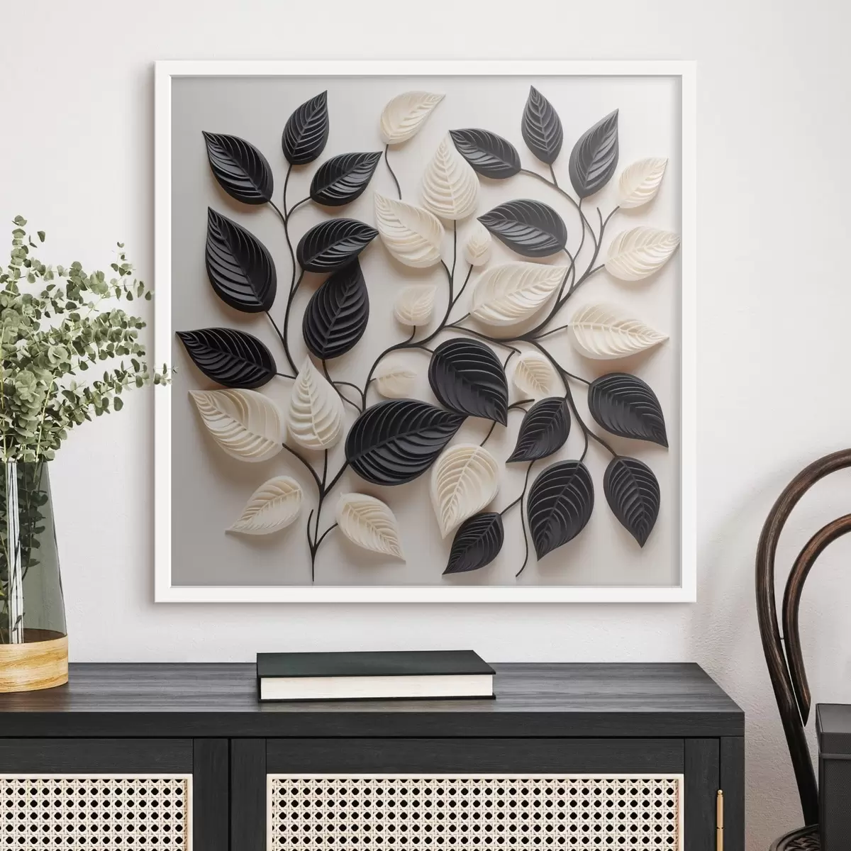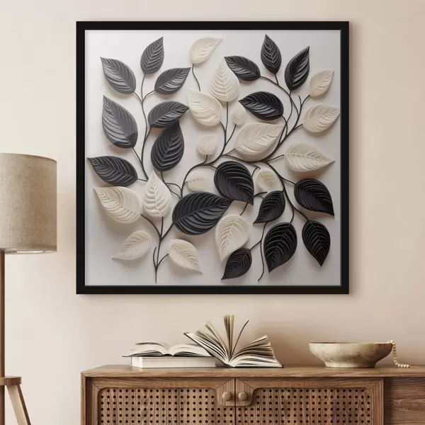 Plakatas Juodų ir šviesių lapų kompozicija ant šakų Ne f48606