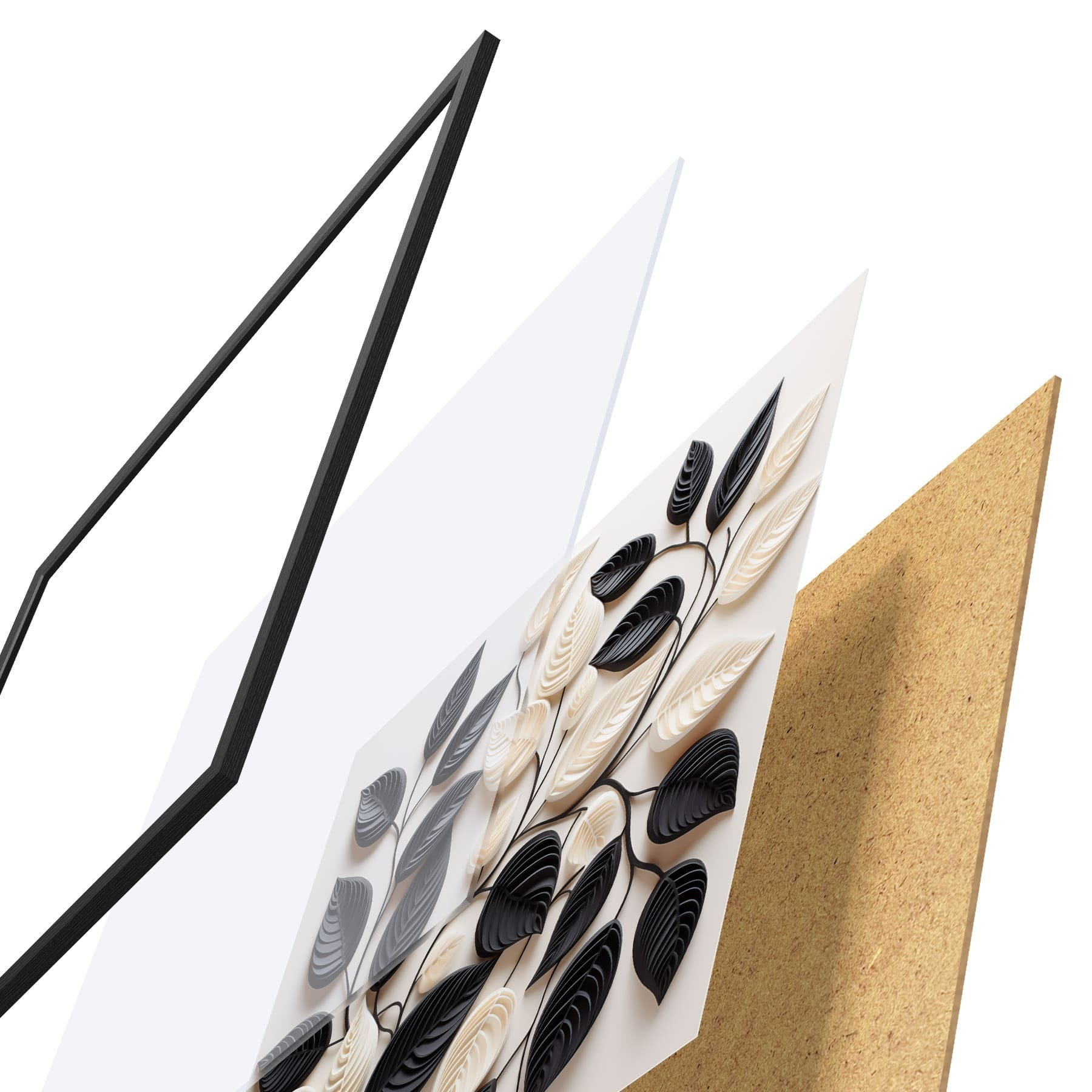 Plakatas Juodų ir šviesių lapų kompozicija ant šakų f48606