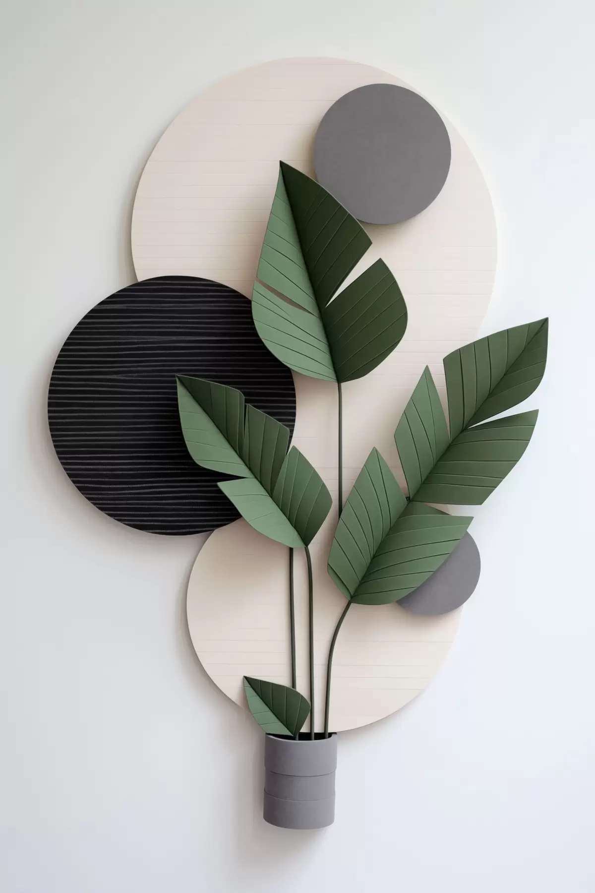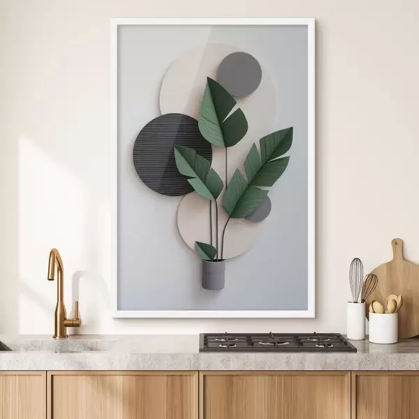 Plakatas Geometriniai apskritimai ir žali lapai minimalistiniame makete Ne f48607