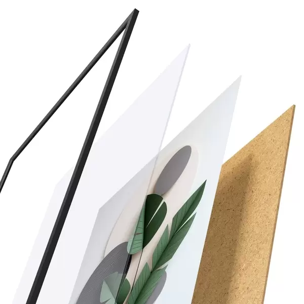 Plakatą sudaro rėmas, pleksiklas, atspausdintas vaizdas ir medžio drožlių plokštės pagrindas. Plakatą galima iš karto pakabinti ant sienos dėl kitoje pusėje esančių laikiklių.