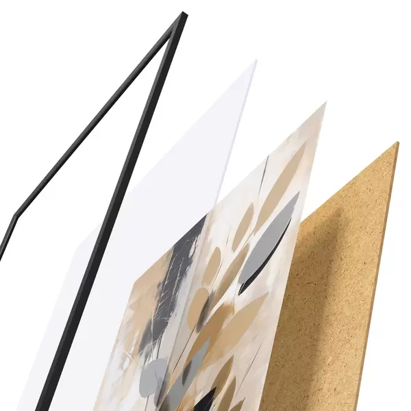 Plakatą sudaro rėmas, pleksiklas, atspausdintas vaizdas ir medžio drožlių plokštės pagrindas. Plakatą galima iš karto pakabinti ant sienos dėl kitoje pusėje esančių laikiklių.
