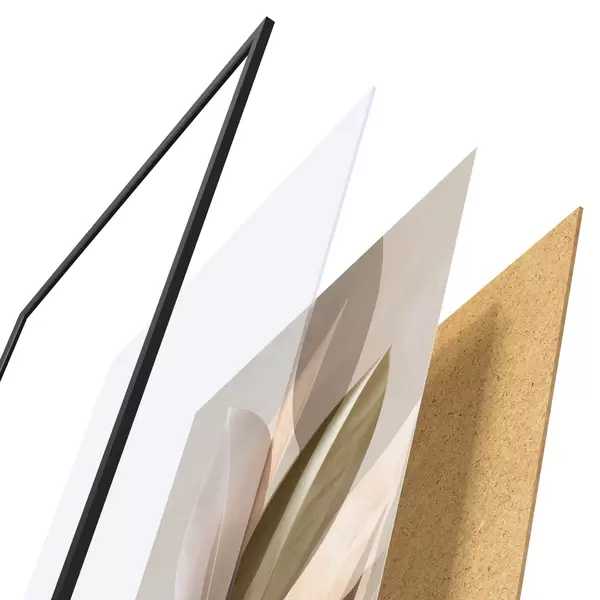 Plakatą sudaro rėmas, pleksiklas, atspausdintas vaizdas ir medžio drožlių plokštės pagrindas. Plakatą galima iš karto pakabinti ant sienos dėl kitoje pusėje esančių laikiklių.