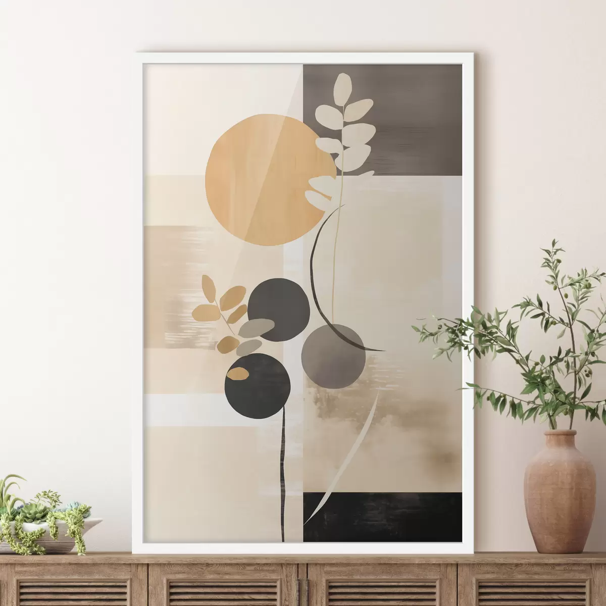 Plakatas Abstrakcija su lapais ir apskritimais f48612